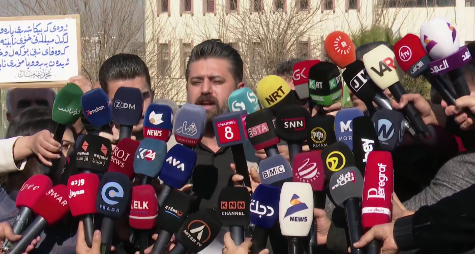 أعلنت لجنة حماية المعلمين المعتصمين في السليمانية، اليوم، استئناف مقاطعتهم للعملية التعليمية احتجاجا على استمرار تأخير صرف الرواتب. وفي مؤتمر صحفي، أكدت اللجنة أنها ستبدأ بمقاطعة العملية التعليمية في كافة المدارس اعتبارا من يوم غد، حتى يتم توزيع رواتب شهري ديسمبر 2024 ويناير 2025 قبل نهاية الشهر الجاري.