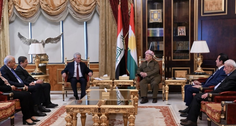 Peregraf- KDP President Masoud Barzani met on Monday with the Presidency of the Kurdish National Council in Syria (ENKS) in Pirmam, underscoring the urgency of Kurdish unity as political dynamics in Syria continue to evolve.