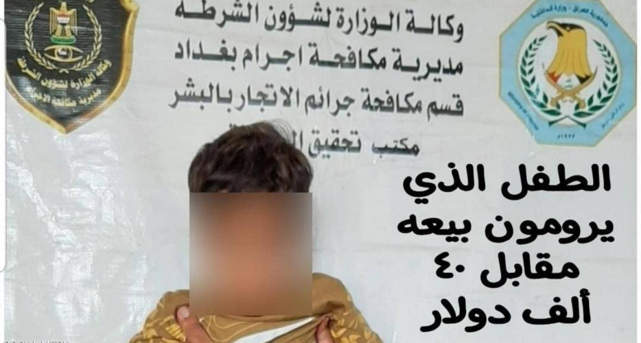 ڕۆژی چوارشەممە 1-9-2021، هێزەكانی بەرەنگاربوونەوەی تاوان لە بەغداد گرووپێكی دیكەیان دەستگیر كردووە كە بەنیازی فرۆشتنی منداڵێك بوون بە بڕی 40 هەزار دۆلاری ئەمریكی، ئەوەش دوای ئەوەی مەفرەزەكانی بەرەنگاربوونەوەی تاوان لە بەغداد/بەشی بازرگانی بە مرۆڤ لە ڕەسافە، بۆیان دەركەوتووە لە ناوچەی عەعزەمییە گرووپێك هەیە بازرگانی بە منداڵانەوە دەكات و دوای فرۆشتنیان دەیانێرن بۆ پارێزگای نەینەوا.